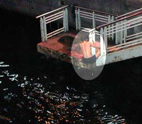 このように、この日は夜の光線の為であろうか水は澄んで見え、夜ながら川底まで見通せ、魚が泳いでいる姿がよくわかるので、思わず飛び込もうという衝動に駆られたのか、もしくは計画的な行為であるのかは分からないが、相当興奮していた様子であった。